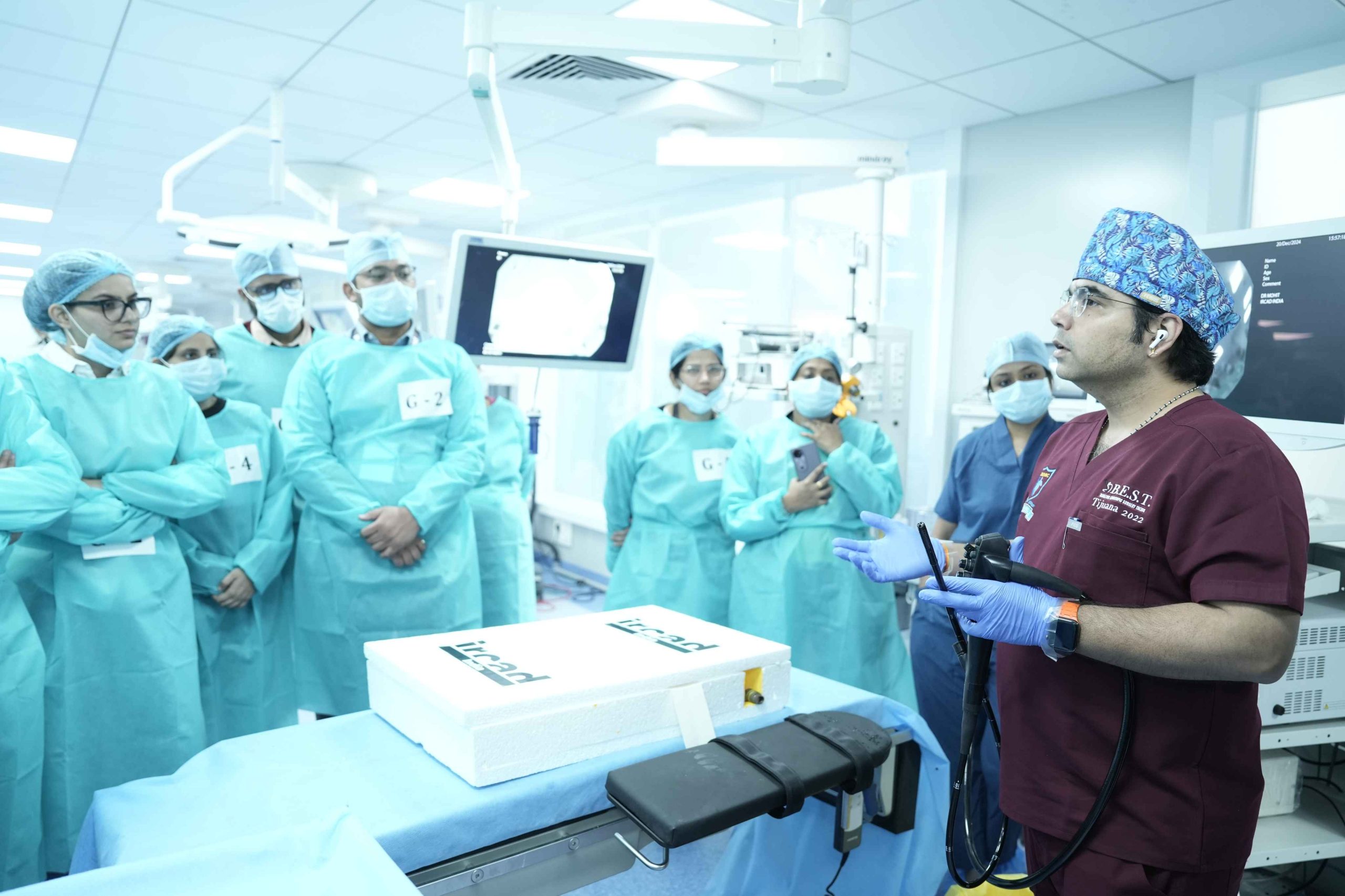 The Comprehensive Upper GI Endoscopy Training Program, held on 20th December 2024 at IRCAD India, Indore, was a highly engaging and hands-on educational experience for surgeons and gastroenterologists. The program began with demonstrations and equipment orientation sessions, covering essential aspects such as patient preparation, scope insertion and navigation through the esophagus, stomach, and duodenum, biopsy techniques, equipment handling, and sterilization protocols. This was followed by a series of focused lectures on the fundamentals and anatomy of upper GI endoscopy, identification of common pathologies, safe biopsy practices, and troubleshooting techniques. In the afternoon, participants took part in intensive hands-on training in the animal lab, practicing scope manipulation, navigation through challenging anatomy, retrieval of foreign bodies, simulated biopsies, and basic therapeutic techniques like hemostasis using clips and sprays. The course provided a perfect balance of theory, demonstration, and real-time practice, offering participants an exceptional opportunity to refine their endoscopic skills under expert supervision. The program concluded successfully with enthusiastic participation and positive feedback, reflecting IRCAD India’s continued commitment to advancing surgical education and minimally invasive training.