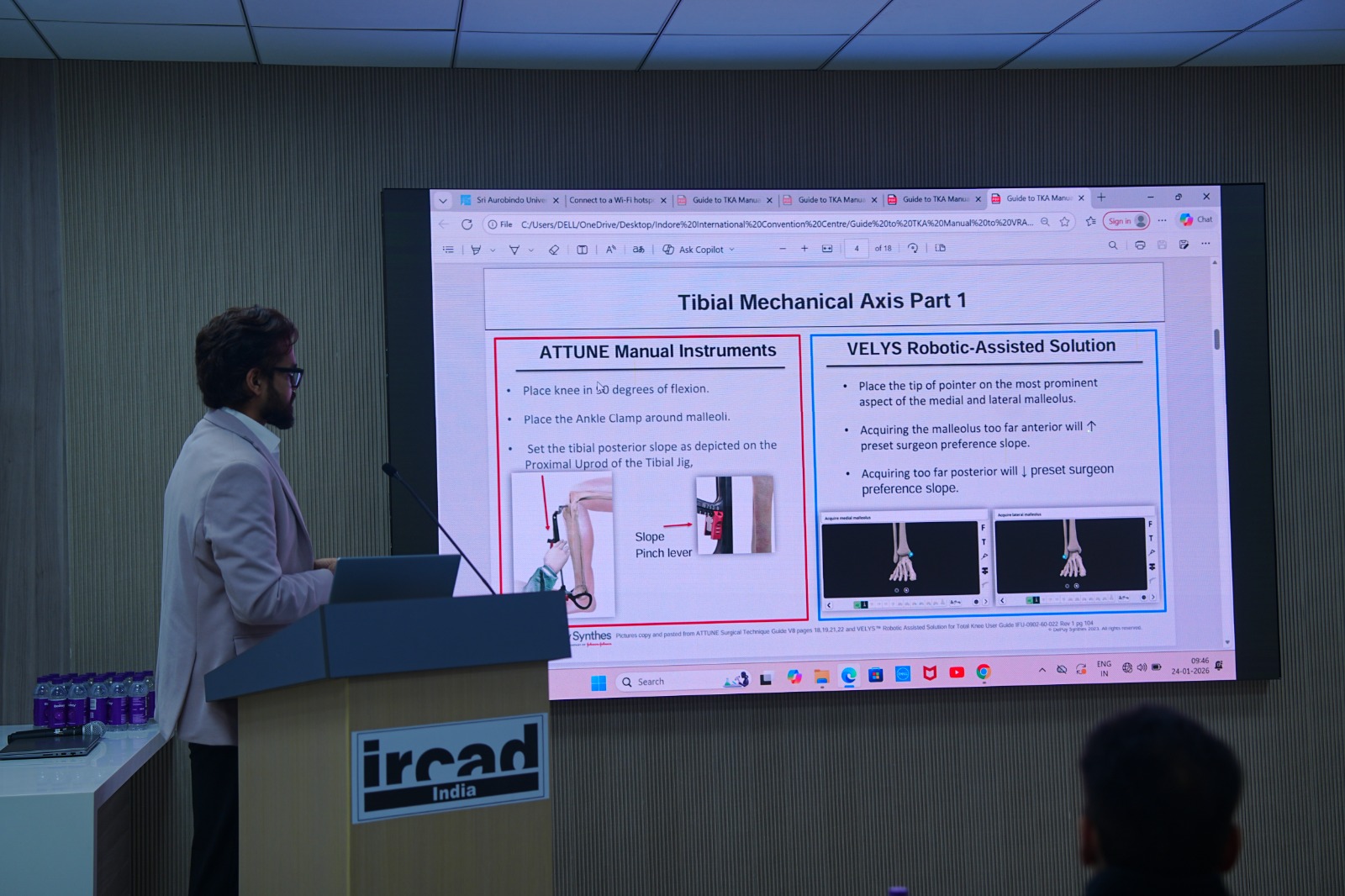 The VELYS™ Total Knee Replacement Cadaver Course, followed by the VELYS™ Hip Solutions Cadaver Course, delivered an exceptional hands-on learning experience. Organised by the Johnson & Johnson Institute in collaboration with IRCAD India, the program offered access to a state-of-the-art robotic lab, high-quality cadavers, and world-class training facilities. Participants gained practical exposure to robotic-assisted knee and hip procedures, effectively bridging advanced technology with surgical excellence.